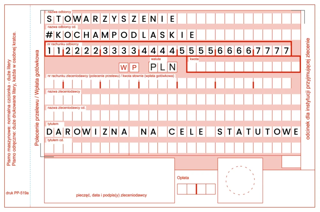 Jeśli wolisz dokonać wpłaty na poczcie, uzupełnij formularz wpłaty lub pobierz gotowy druczek, klikając w poniżej.